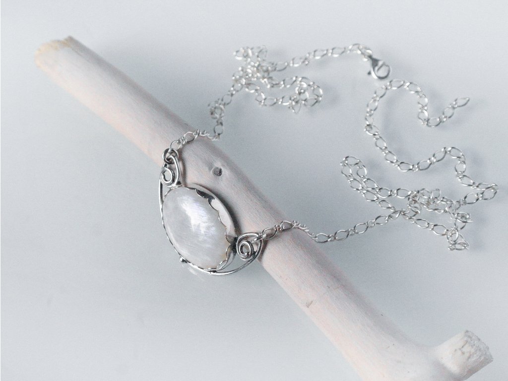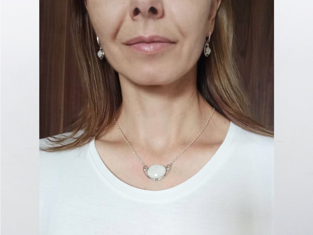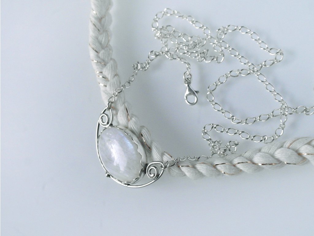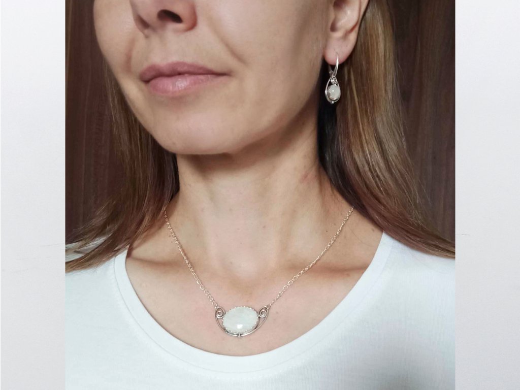 - originálny náhrdelník vyrobený zo striebra Ag 925 a oválneho kabošónu prírodného minerálu - mesačného kameňa, zapracovaný priamo s retiazkou