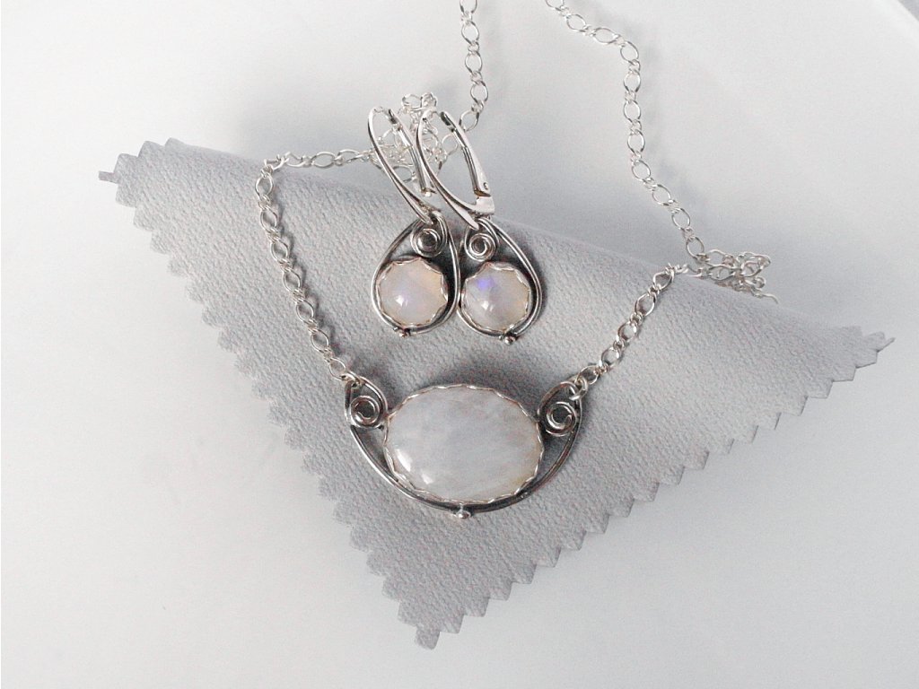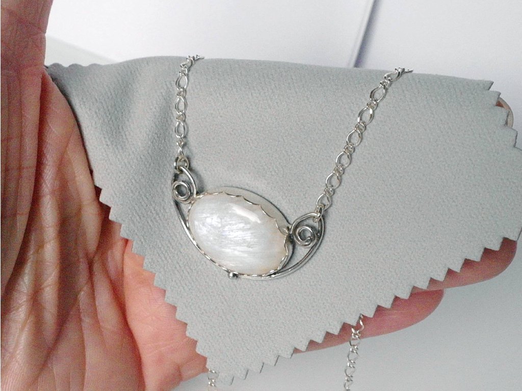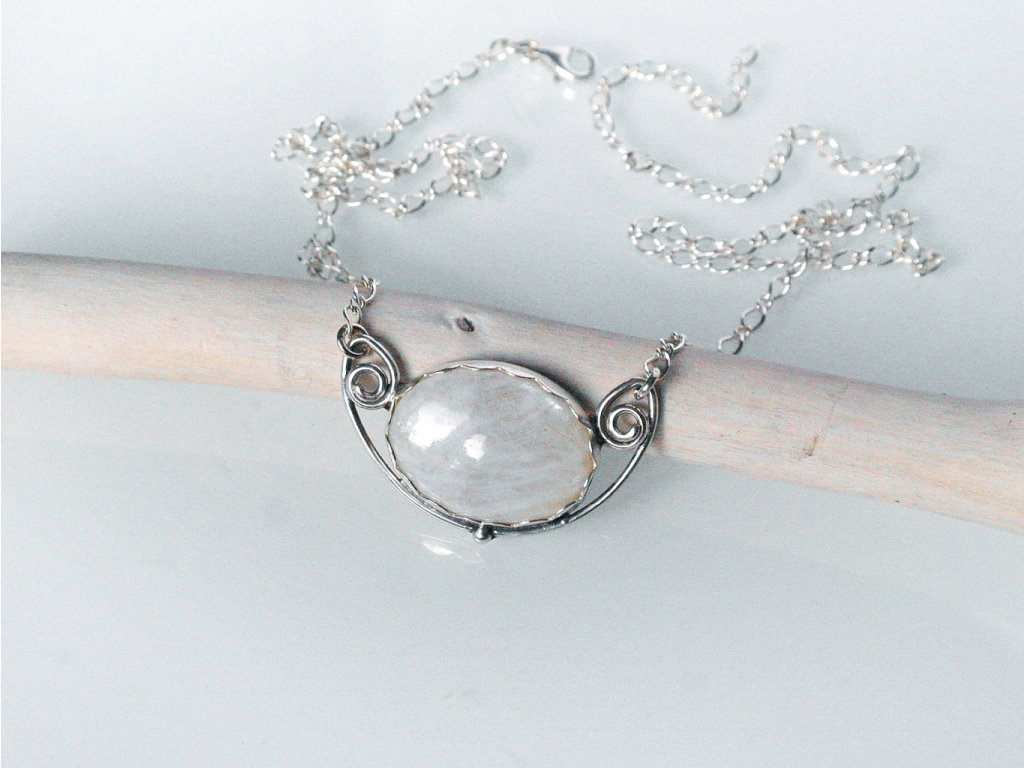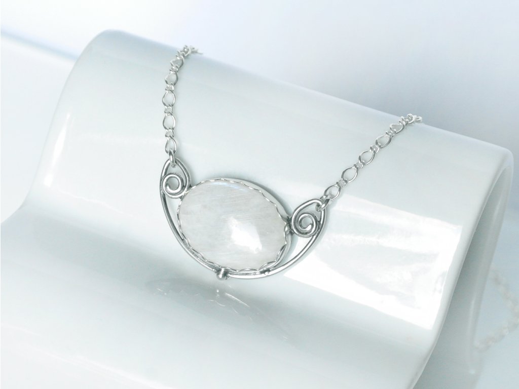 - originálny náhrdelník vyrobený zo striebra Ag 925 a oválneho kabošónu prírodného minerálu - mesačného kameňa, zapracovaný priamo s retiazkou