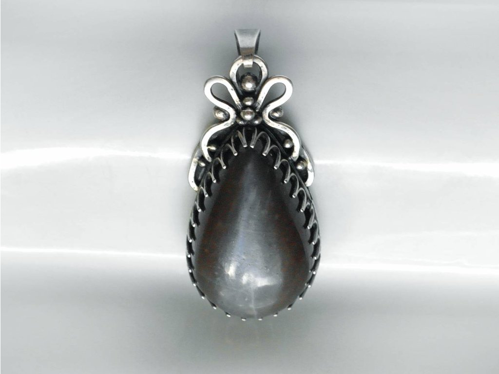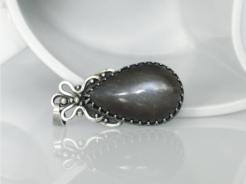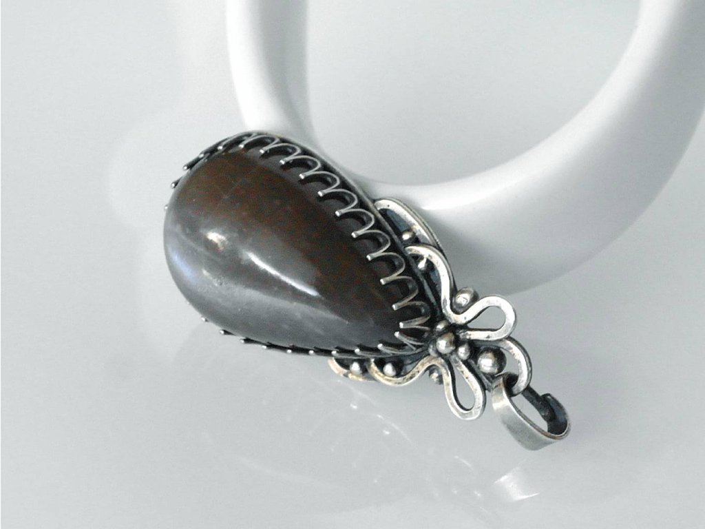 - prívesok vyrobený zo striebra Ag 925/1000 a prírodného "saténového" mesačného kameňa v tmavošedom sfarbení